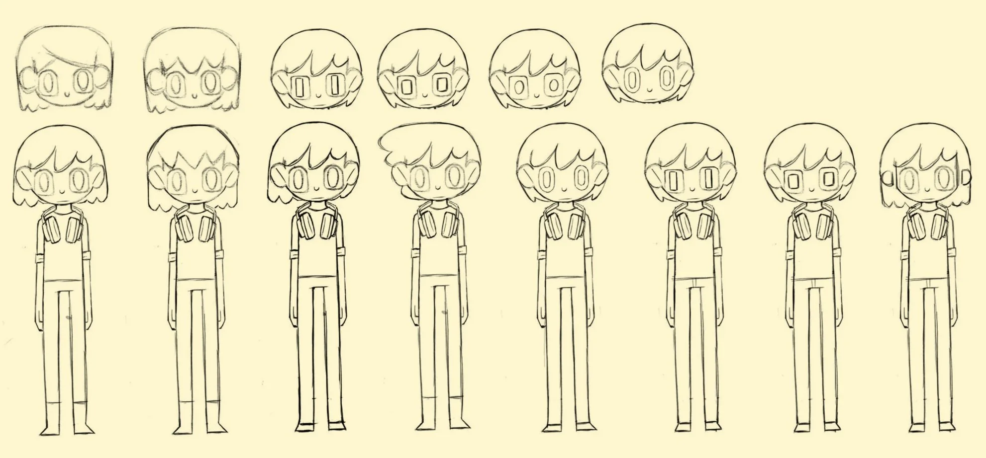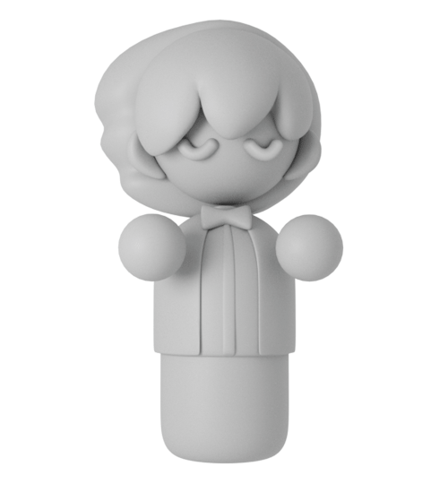 Our character’s name is OwO. He is an imaginative boy who is easily carried away by music. He wears a lively orange top, denim jeans, and cool canvas sneakers.